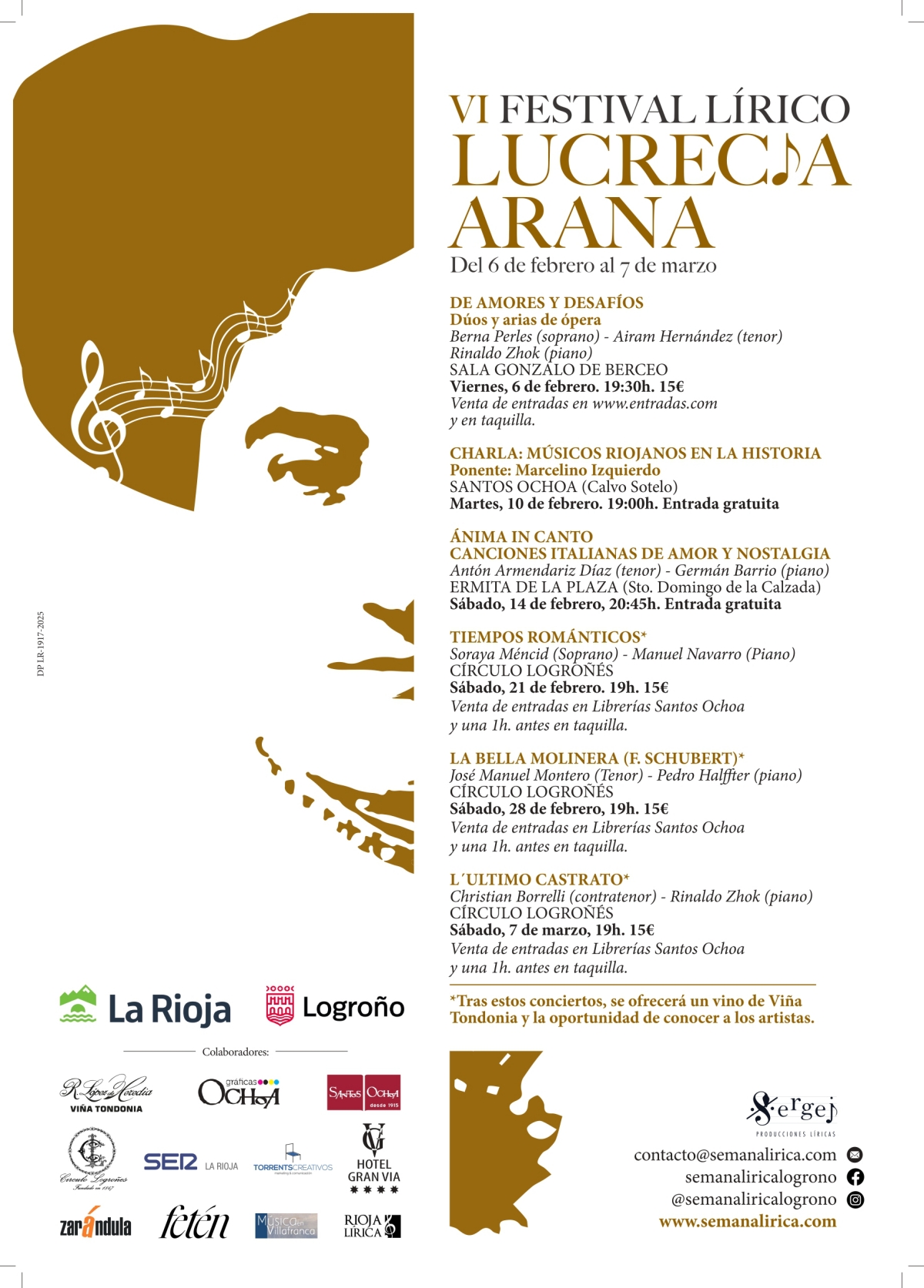 El VI Festival Lírico «Lucrecia Arana» convierte Logroño en un escenario para la ópera y la zarzuela con una programación de recitales, conciertos de cámara y actividades divulgativas, además de los ya habituales “Bocaditos musicales” en espacios urbanos, acercando la música al público de forma directa. El proyecto, que se celebra anualmente desde 2021, combina excelencia artística y vocación pedagógica para democratizar el acceso a la lírica y atraer nuevos públicos con formatos de pequeño y mediano aforo. La edición reúne intérpretes de trayectoria nacional y refuerza la colaboración con el tejido cultural riojano, ofreciendo una experiencia cercana, elegante y de calidad en la ciudad.