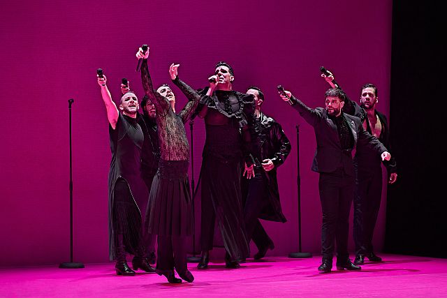 Una docena de artistas en escena son los encargados de guiarnos por este pasaje coreográfico, con carácter de copla, que apunta a diferentes atmósferas: el deseo, la fantasía, la provocación… necesidades que emanan de nuestra propia intimidad, de nuestro cuerpo, y hacen sostener nuestra energía vital.