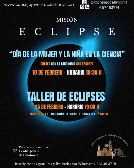 El Consejo de la Juventud Comarcal de Calahorra (CJCC) continúa desarrollando el proyecto “Misión Eclipse”, una iniciativa de divulgación científica y educativa que busca acercar la astronomía a la ciudadanía, acercando la información del eclipse que disfrutaremos el día 12 de agosto de 2026.