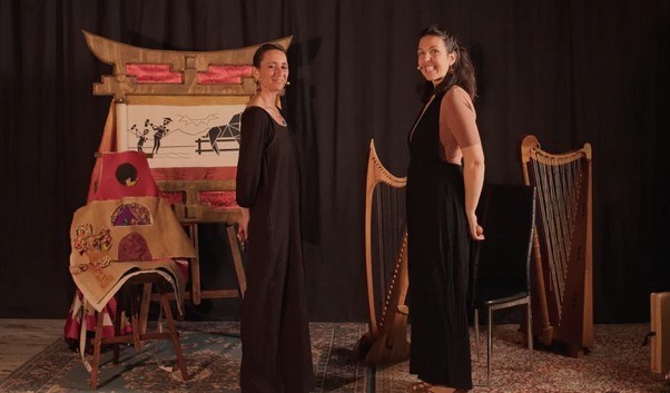‘Filandonas’ se compone de una selección de cuentos elaborados en diferentes soportes textiles, como son un delantal, un paraguas, unas cuantas faldas, un papiro… todos bien cosiditos a mano y narrados a corazón abierto. Pero ‘Filandonas’ también es un concierto de piezas musicales únicas compuestas e interpretadas por unas manos y una voz mágicas, utilizando diferentes instrumentos de percusión, varios tipos de arpas y panderos de lugares exóticos del mundo.